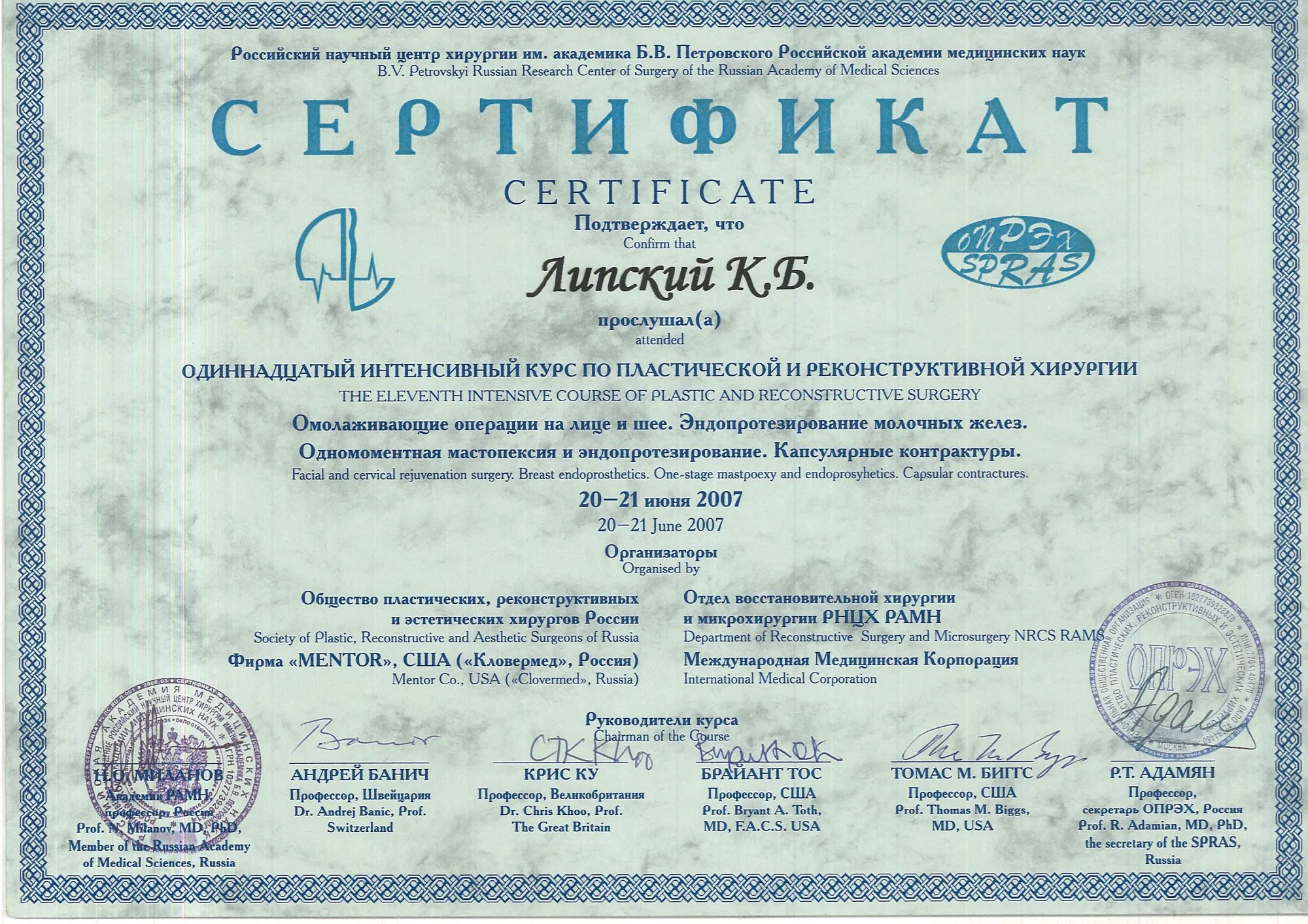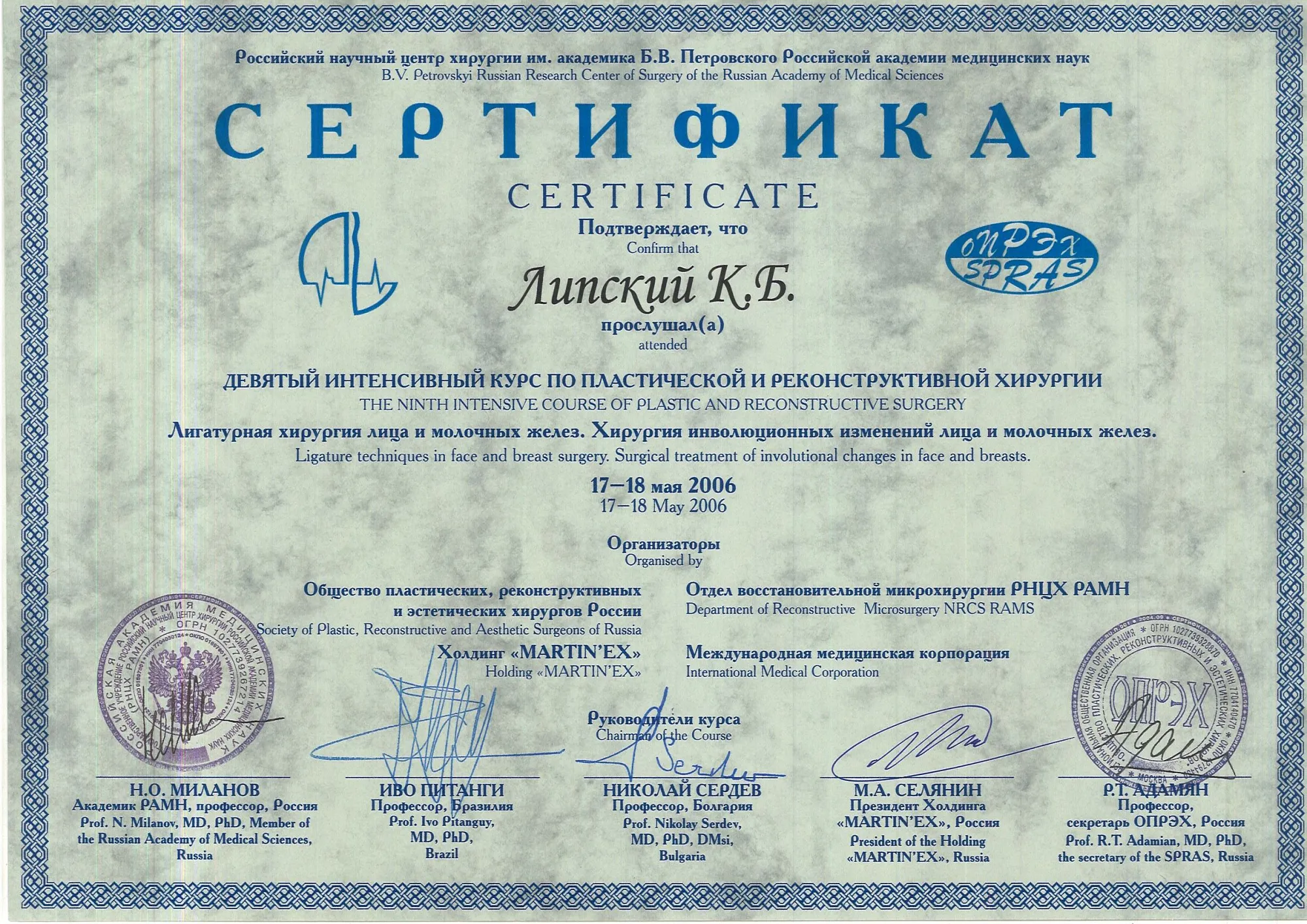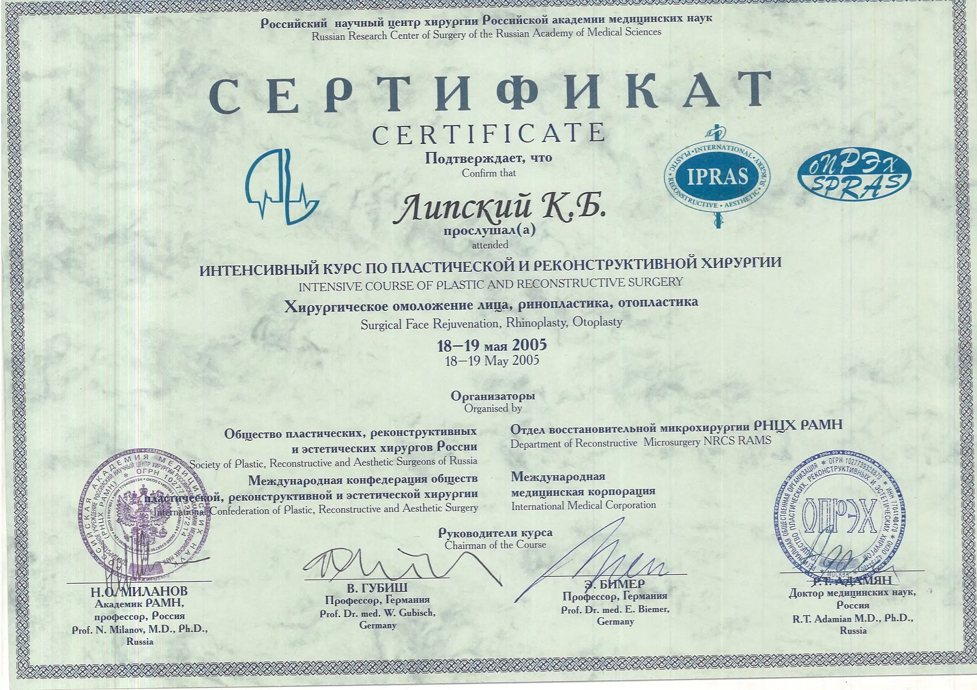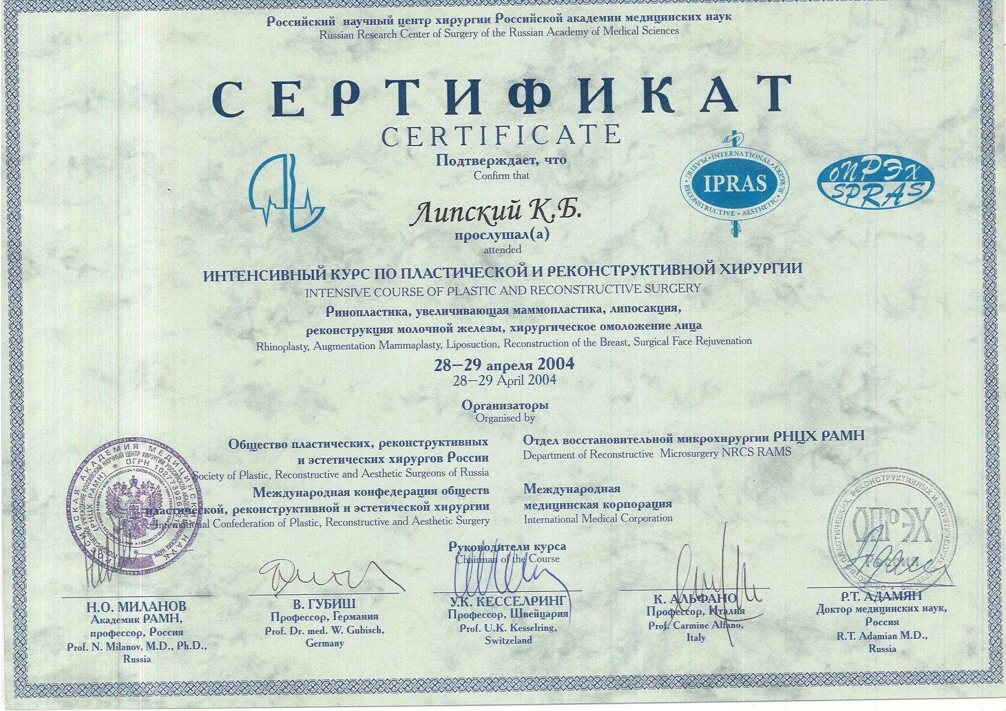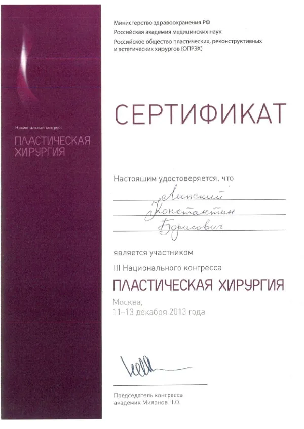 пластический хирург, Кандидат медицинских наук