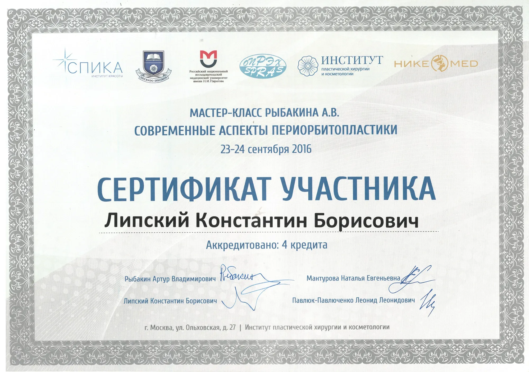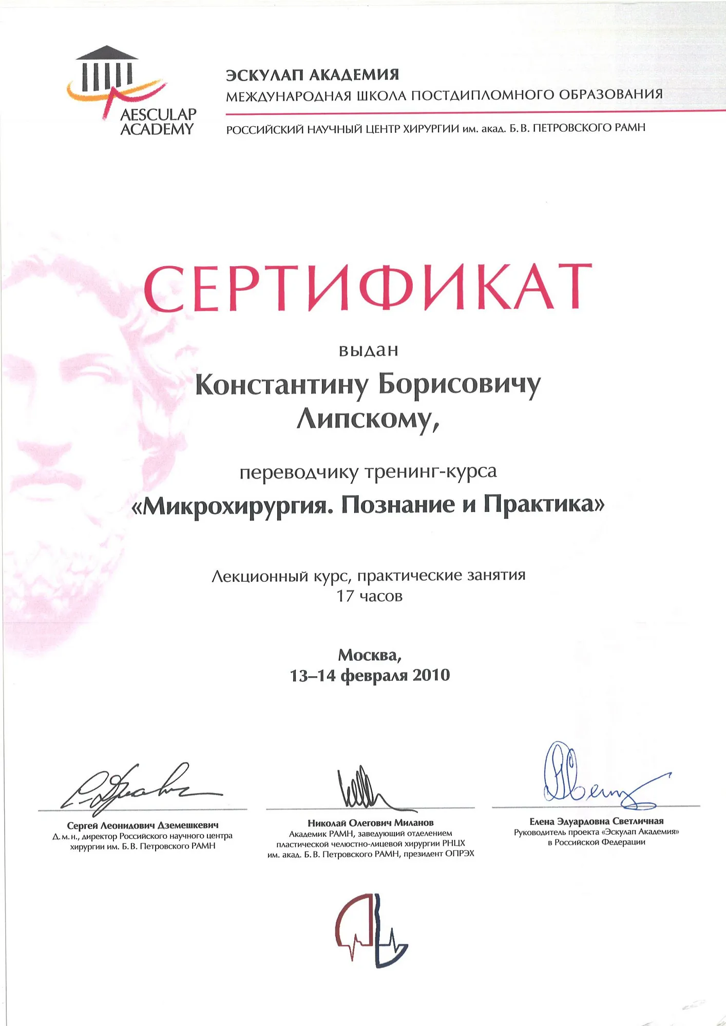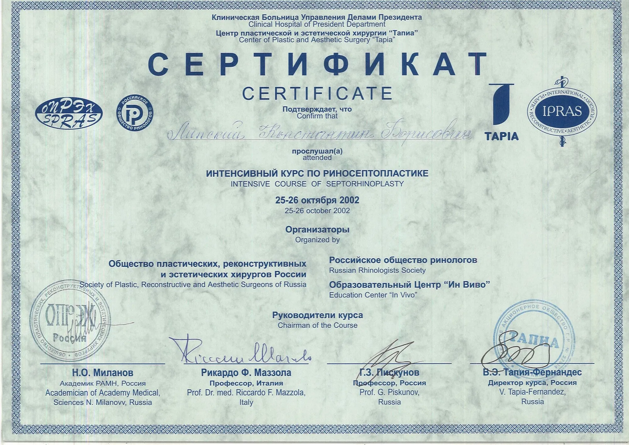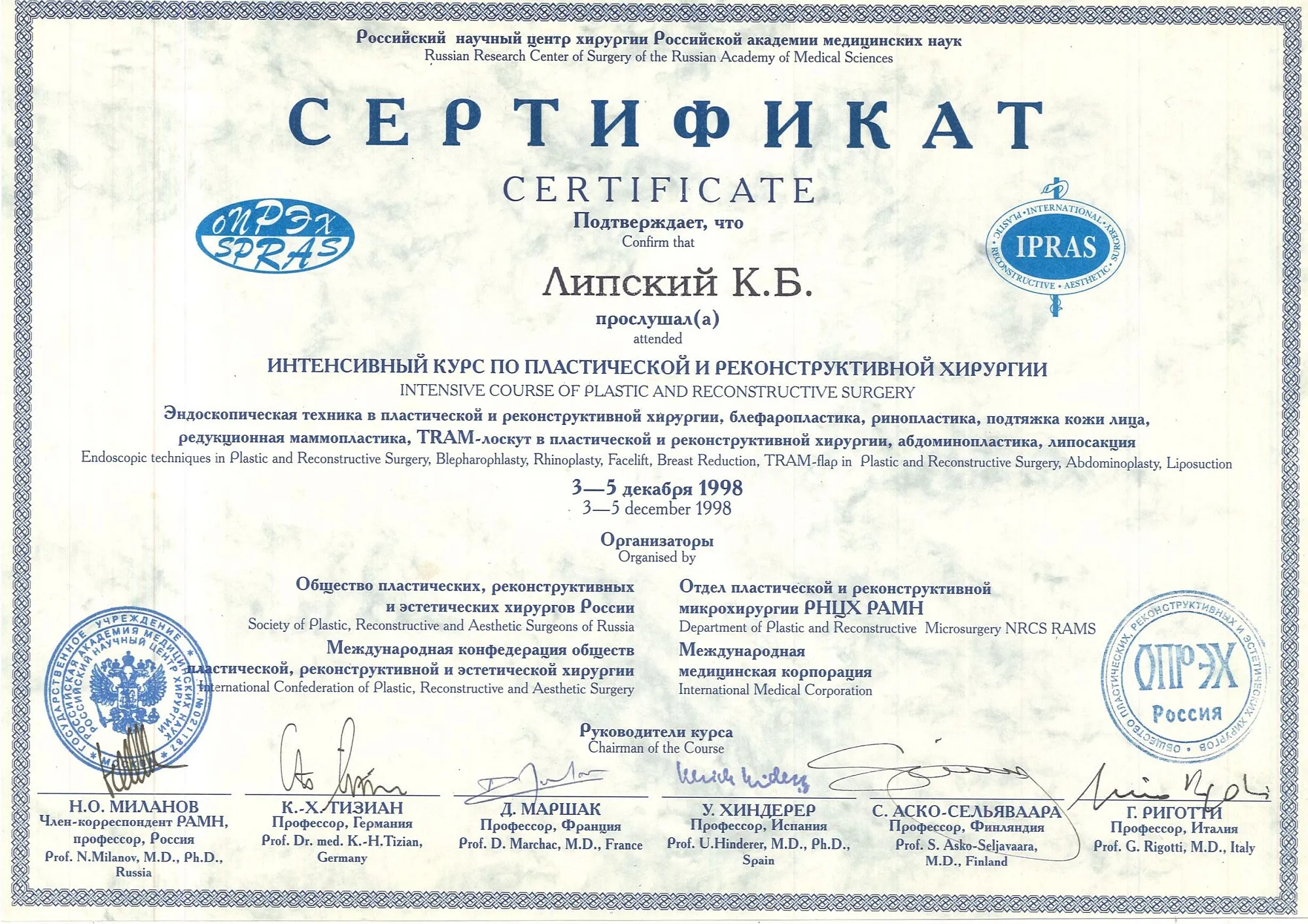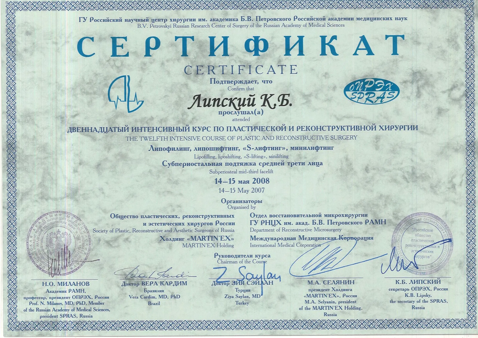 пластический хирург, Кандидат медицинских наук