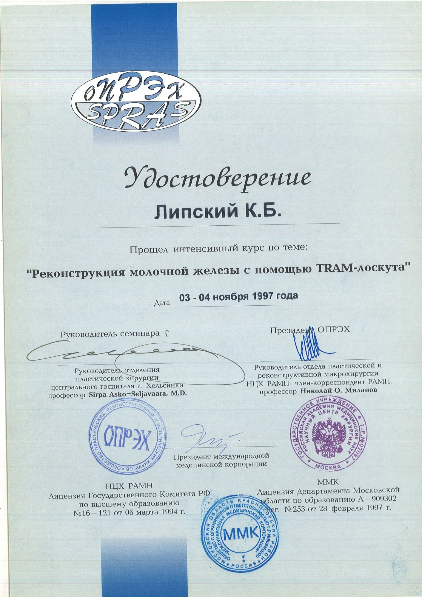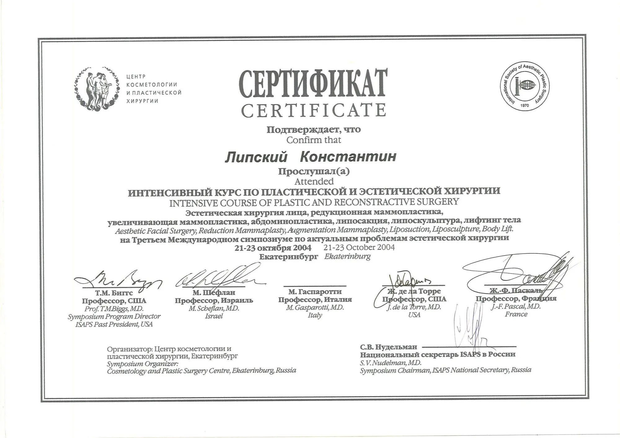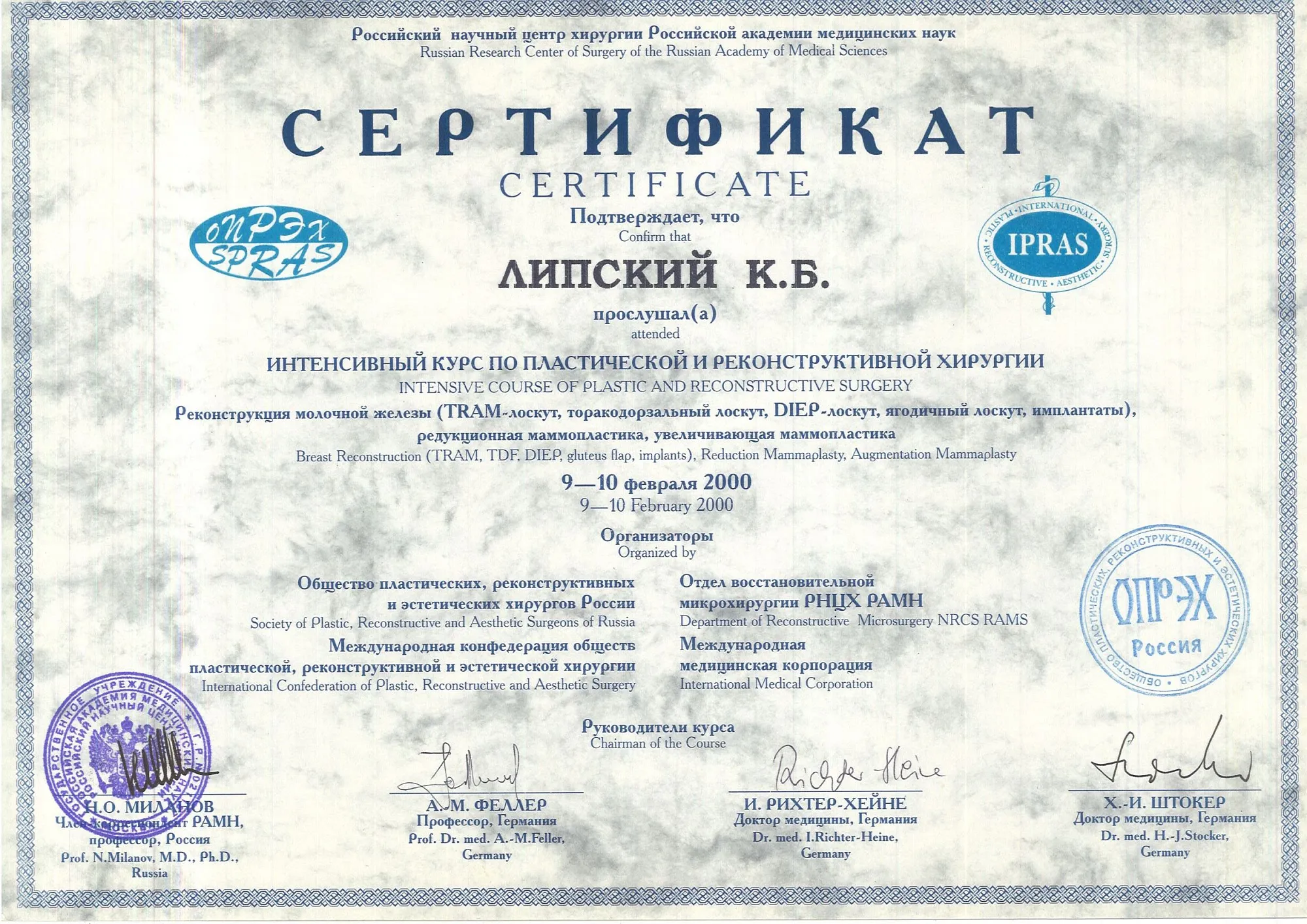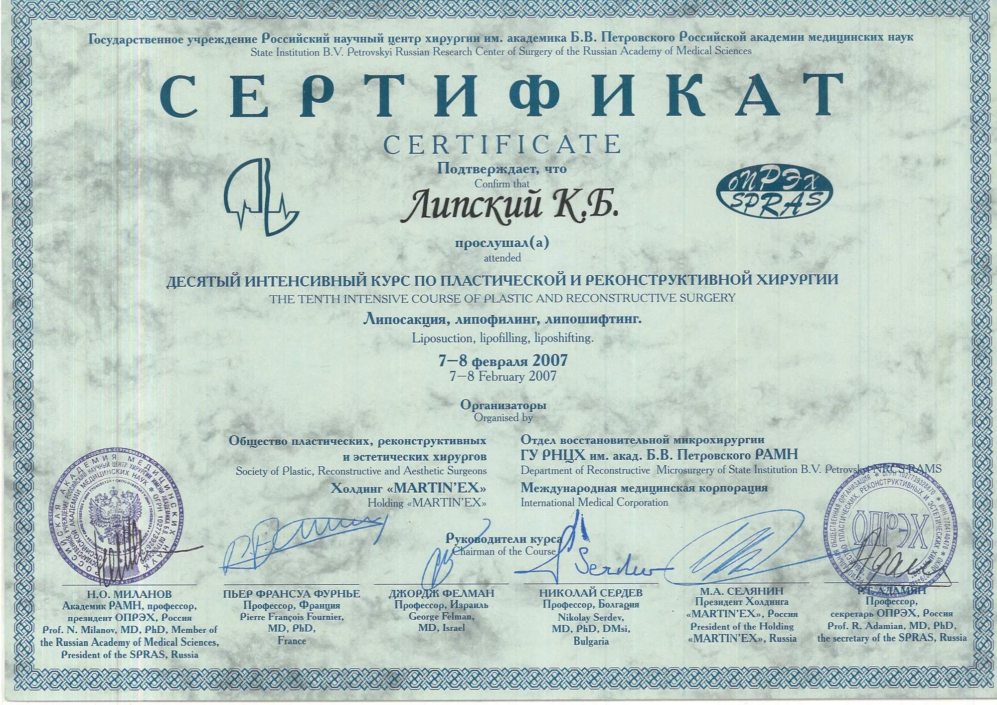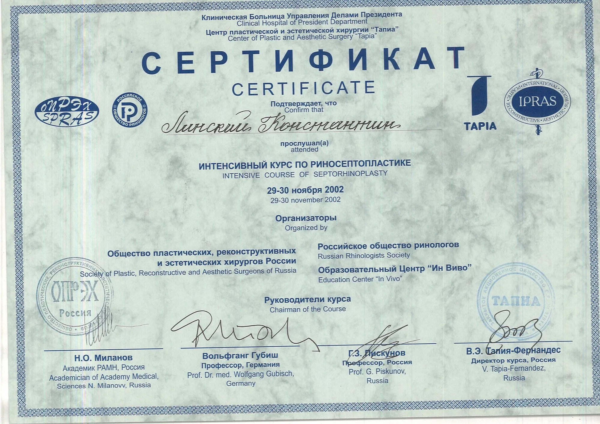 пластический хирург, Кандидат медицинских наук
