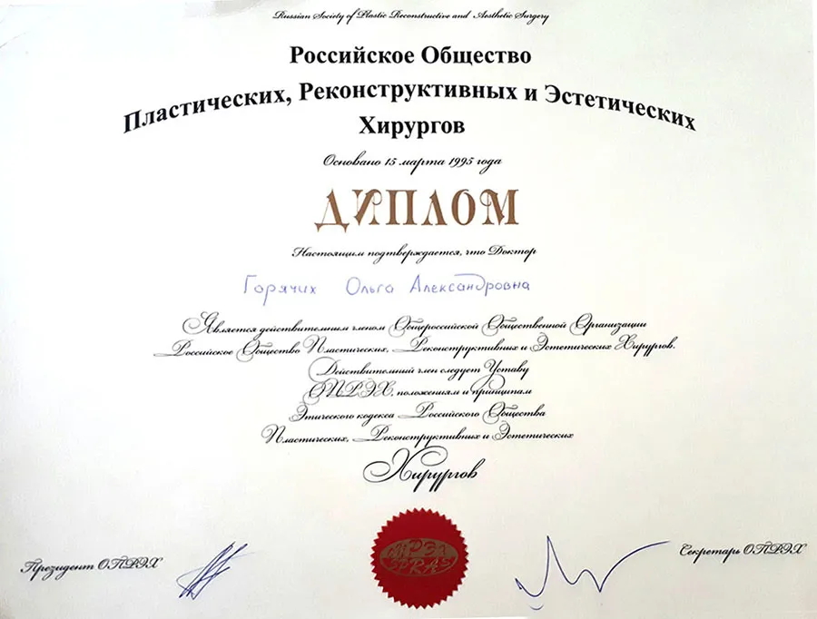 Постоянный участник российских и международных съездов и конгрессов в области пластической, реконструктивной и эстетической хирургии. Мастер-класс профессора Акселя-Марио Феллера (Германия) «Достижения в эстетической хирургии молочных желез. Эстетическая коррекция молочных желез – Live Surgery», 2016 г. Стаж работы: 8 лет