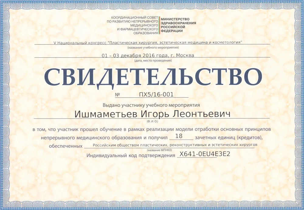 Пластический хирург, Кандидат медицинских наук