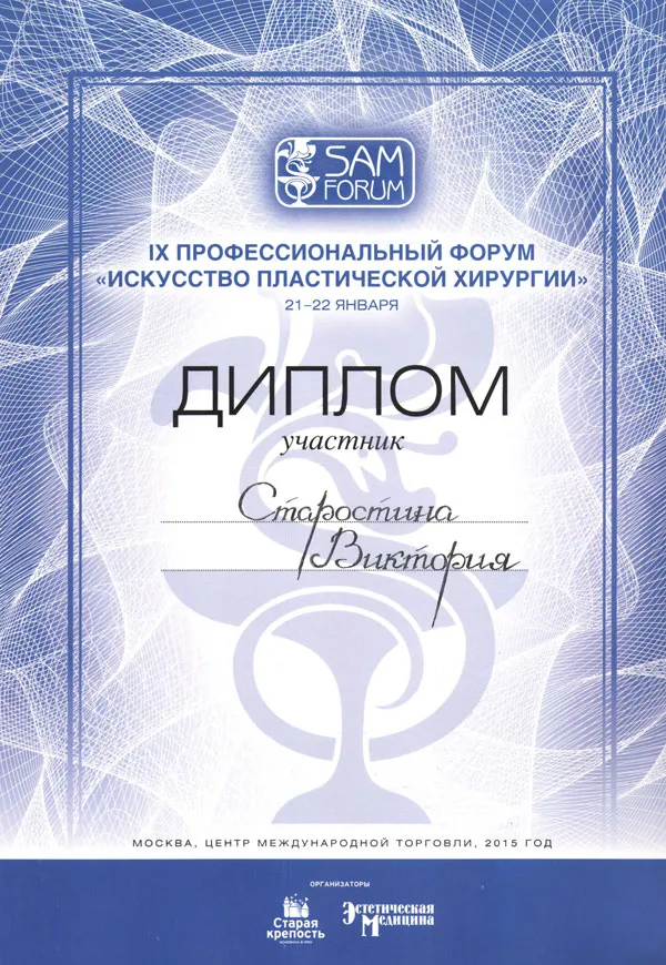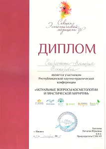 Пластический хирург, член национального общества эстетической медицины. Пластической хирургией занимается с 1992 года. Выполняет операции по следующим разделам эстетической хирургии: блефаропластика, SMAS-пластика, лифтинги лица, липосакция, пластика наружных половых органов, отопластика, коррекция рубцов, липофилинг лица и тела, оперативная дермабразия. Освоены и применяются все виды инъекционных методик, нитевые методы подтяжки лица.