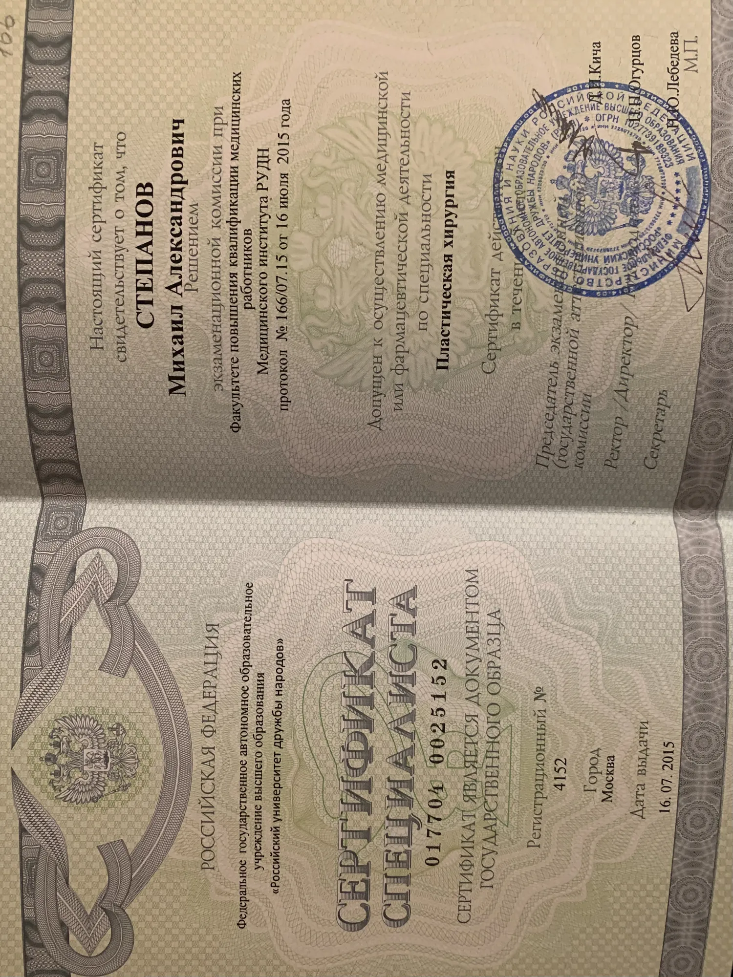 Пластический хирург, кандидат медицинских наук