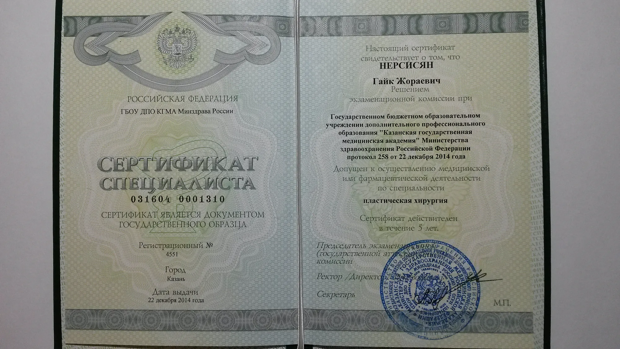 Пластический хирург, хирург высшей категории, КМН, врач года 2004, врач года 2015