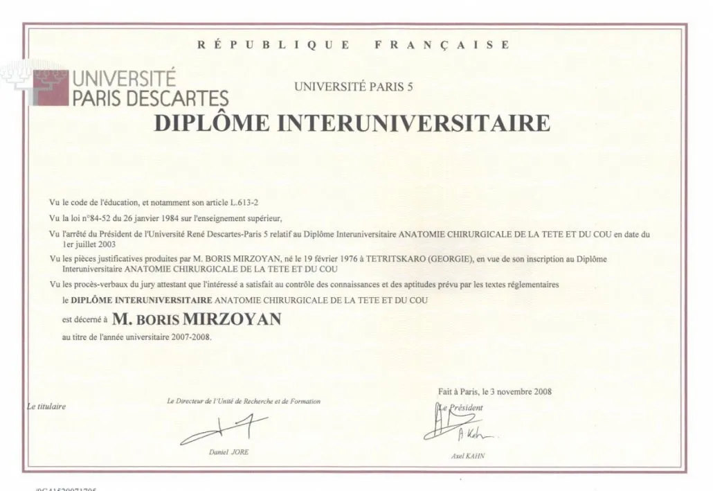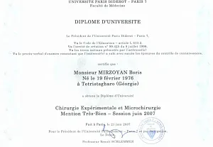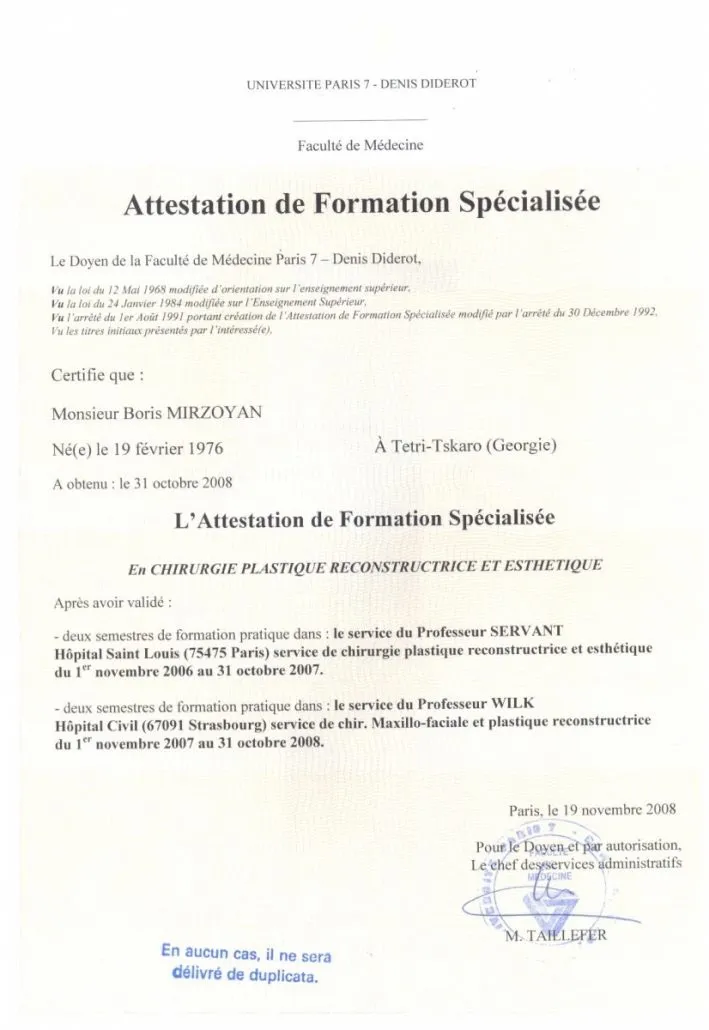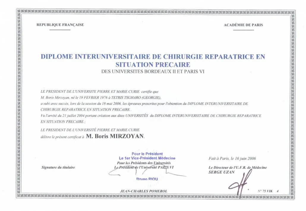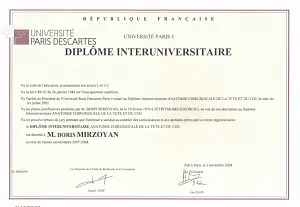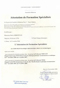 С 2002 по 2015 год специализировался и работал во Франции и в Швейцарии. Является лицензировнаным пластическим хирургом во Франции. С 2012 по 2015 год, работал в отделении пластической, реконструктиной и эстетической хирургии университетской клиники Святого Людовика в Париже. С 2015 года, практика в Москве и в Санкт-Петербурге. Многопрофильный специалист, выполняет операции на лице, груди и теле как эстетического так и реконструктивного характера.