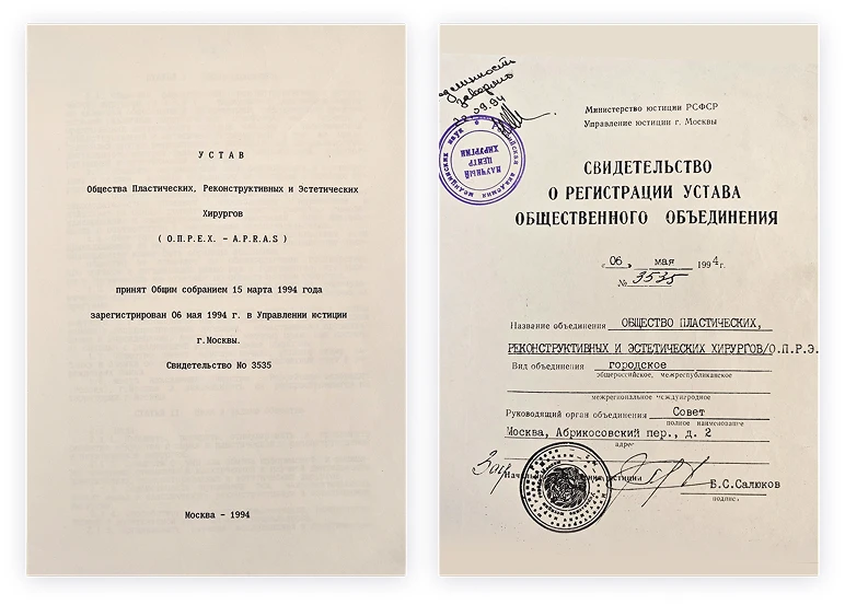 В 1994 году он создал новую организацию - "Общество Пластических Реконструктивных и Эстетических Хирургов" (ОПРЭХ), которое объединило всех членов АПРМ. Так и родилось наше Общество, которое с гордостью продолжает дело во благо Российской эстетической медицины.