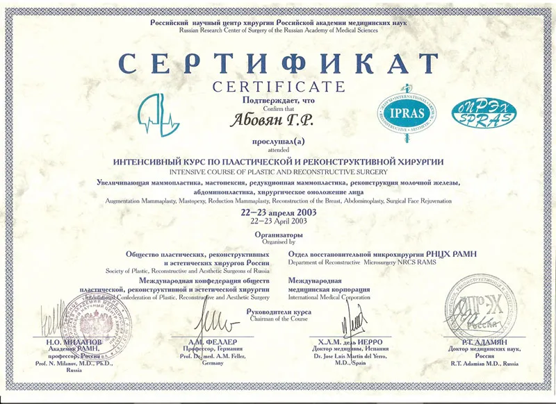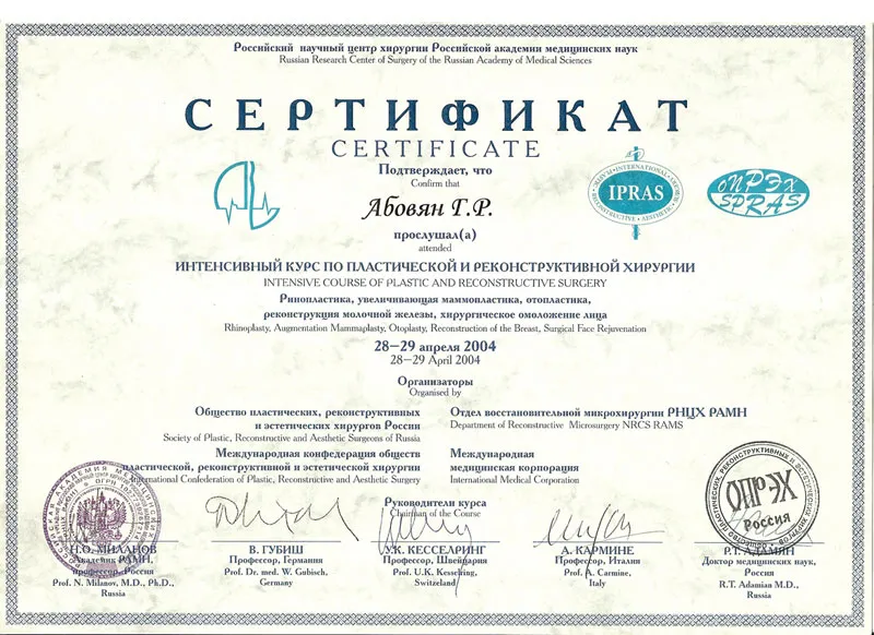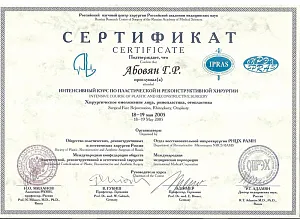 Абовян Георгий Робертович окончил Крымский Медицинский Институт, после чего переехал в Москву и продолжил обучение в интернатуре и ординатуре при ММА им. И.М. Сеченова. После 2002 г. в сферу профессиональных интересов Абовяна Г.Р. попадает пластическая хирургия, вследствие чего врач поступает в аспирантуру РНЦХ им. Вишневского и защищает диссертацию по восстановительной микрохирургии.