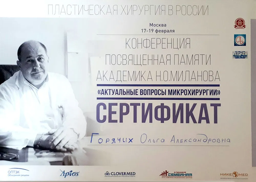 Постоянный участник российских и международных съездов и конгрессов в области пластической, реконструктивной и эстетической хирургии. Мастер-класс профессора Акселя-Марио Феллера (Германия) «Достижения в эстетической хирургии молочных желез. Эстетическая коррекция молочных желез – Live Surgery», 2016 г. Стаж работы: 8 лет