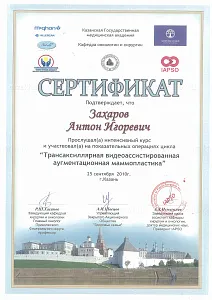 Член Этического Комитета РОПРЭХ Член Профильной Комиссии Минздрава РФ Аттестованный Эксперт Росздравнадзора по специальности «Пластическая Хирургия» Ведущий пластический хирург АО «Институт Пластической Хирургии и Косметологии»