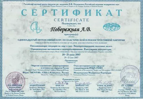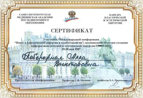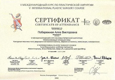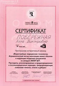 Алла Побережная — пластический хирург со стажем более 18 лет. Ассистент кафедры Педиатрического университета( Санкт-Петербург). Выполняет весь спектр эстетических операций на лице и теле. Не оперирует пациентов без показаний. В сферу особых интересов хирурга входит — омолаживающие операции на лице , в том числе эндоскопические, и коррекция послеродовых и после значительного снижения веса изменений молочных желез и контуров тела