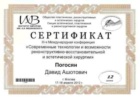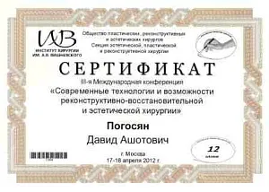 Погосян Давид Ашотович – врач хирург, пластический хирург, эндоскопический хирург. Действующий член российского общества хирургов, Московского общества хирургов.