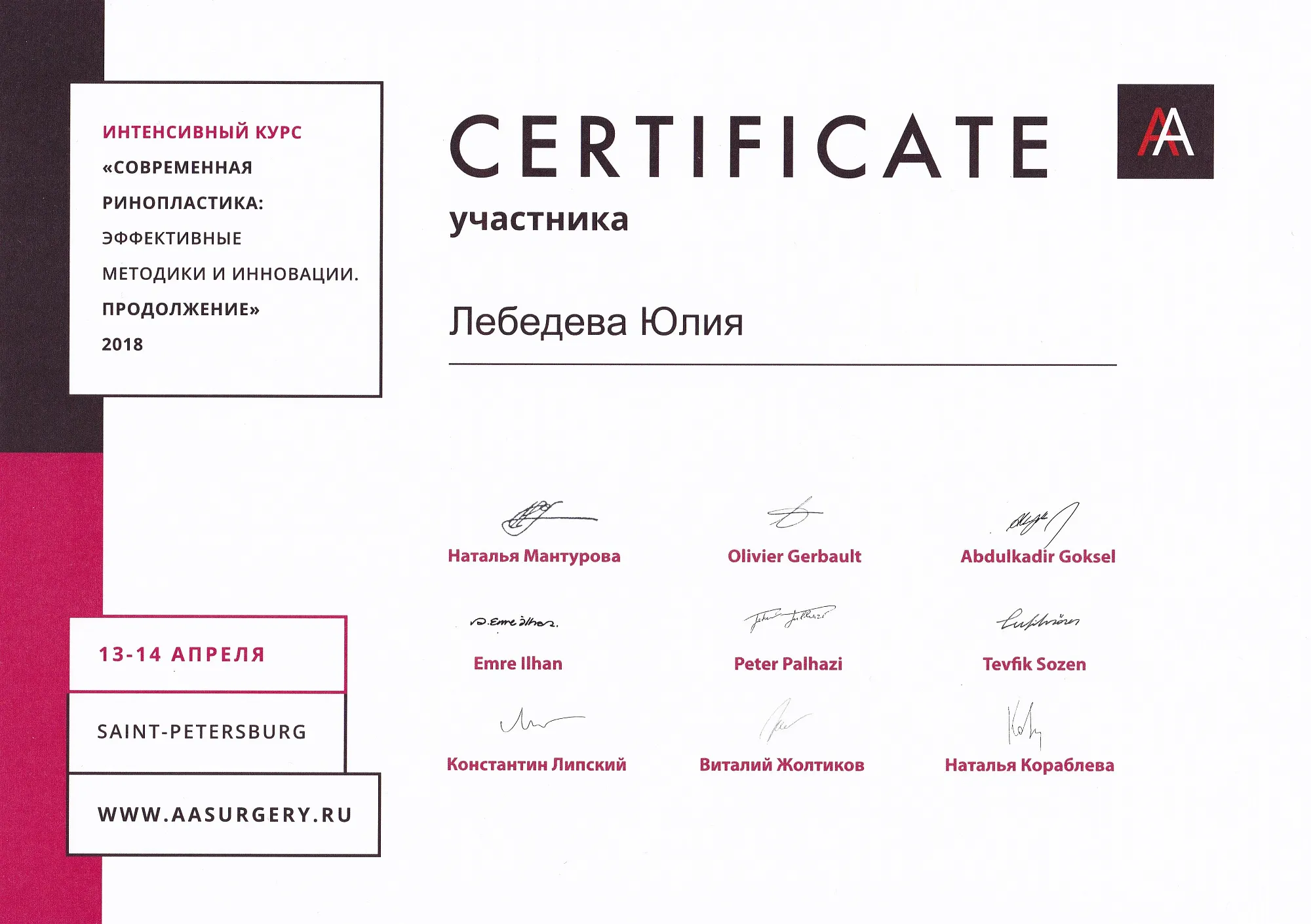 Окончила лечебный факультет Самарского государственного медицинского университета в 2015 году. 2015-2016 гг - клиническая интернатура по специальности "хирургия" 2016-2018 гг - клиническая ординатура по специальности "пластическая хирургия" на кафедре пластической и реконструктивной хирургии ФП и ДПО СПбГПМУ. С 2018 года обучается в очной клинической аспирантуре на кафедре пластической и реконструктивной хирургии ФП и ДПО СПбГПМУ.