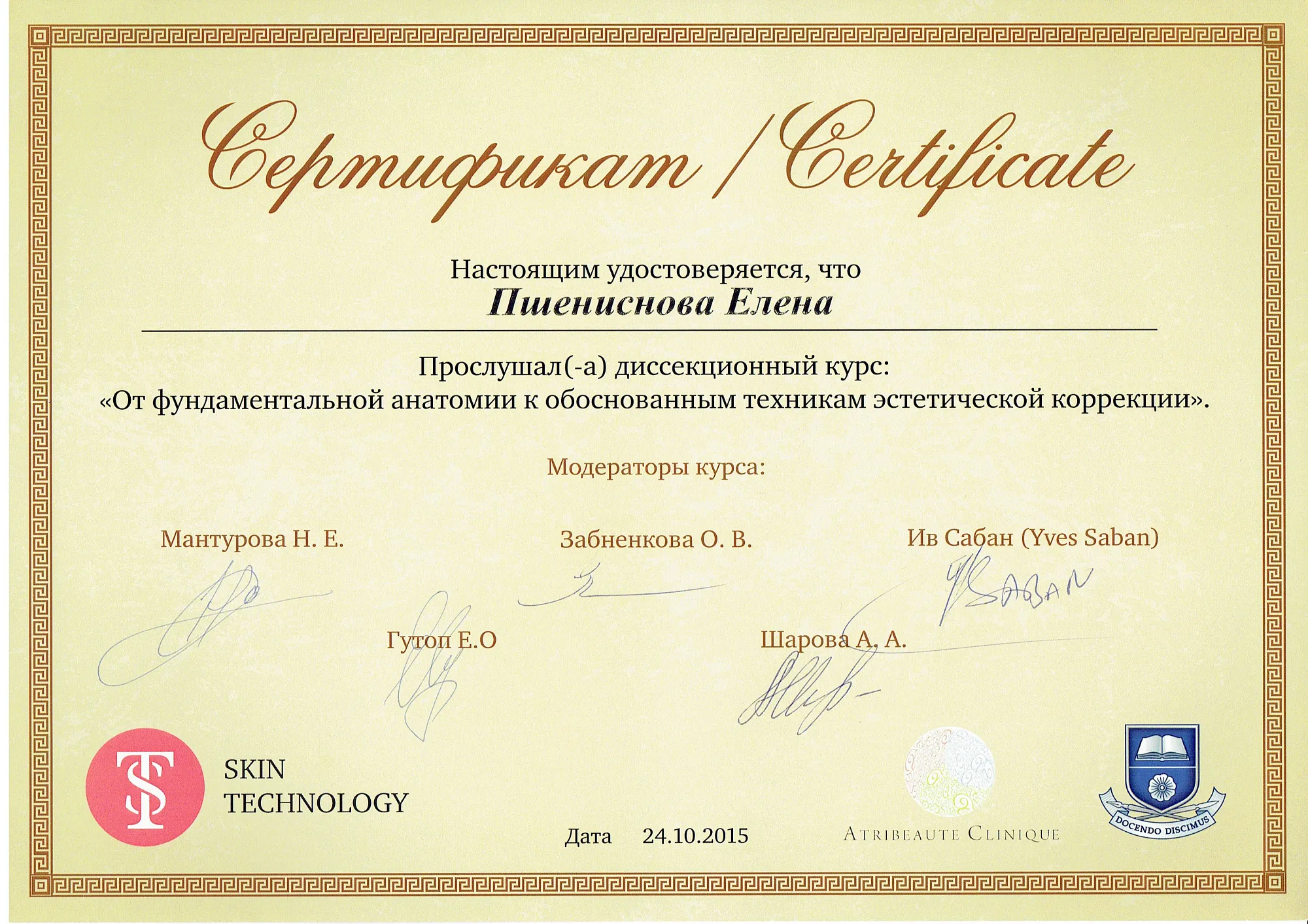 1998г.- окончила Ярославскую государственную медицинскую академию по специальности врач «лечебное дело». Прошла курс последипломного образования (интернатуру, ординатуру) по оториноларингологии, интернатуру по общей хирургии. Получила специализацию "Пластическая хирургия" в ГБОУ ВПО ПСПбГМУ им. И.П. Павлова Минздрава России на кафедре пластической хирургии (г. Санкт-Петербург). 20 лет стажа в хирургии.
