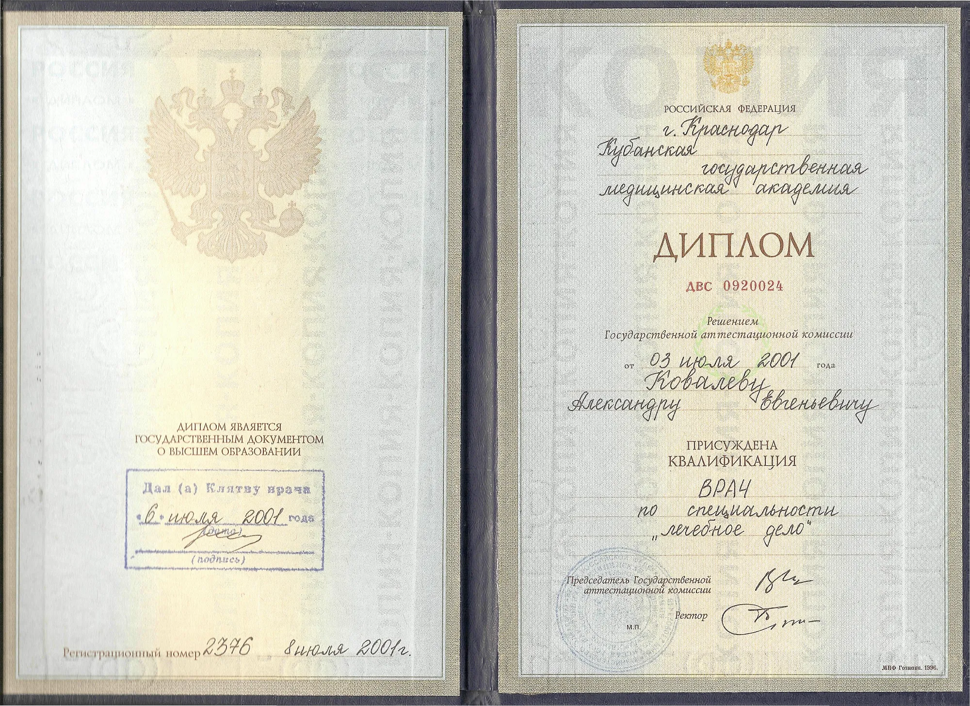 2001 - Кубанская Государственная медицинская академия , Лечебное дело